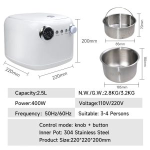 – Lòng nồi: Inox 304 chống dính cao cấp – Bảng điều khiển: Núm xoay cơ học (Knob Control)